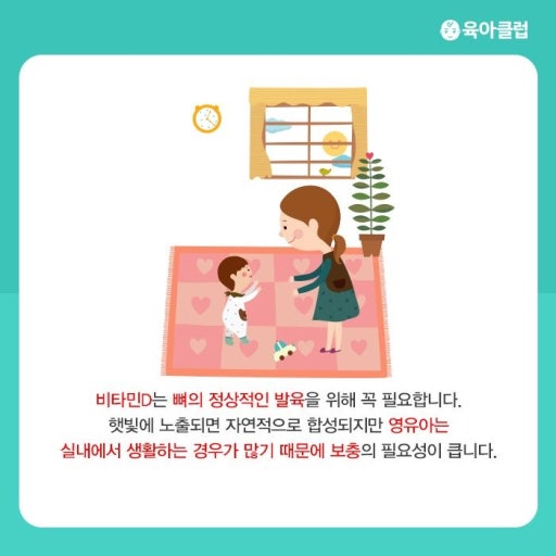 주의사항: 분유에도 비타민 D가 포함되어 있기 때문에, 분유 섭취량과 중복되지 않도록 계산해야 합니다.